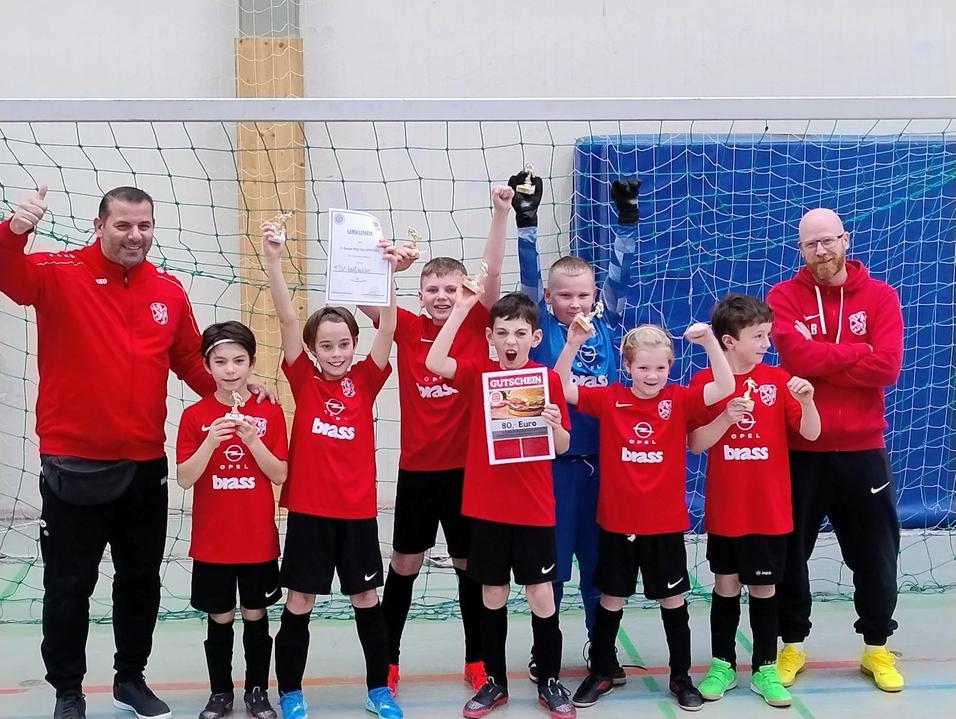 Einen sehr guten dritten Platz errangen unsere Jungs zum Jahresauftakt beim gutbesetzten Turnier in der Treburer Kreissporthalle am 11. Januar 2025. Nach zwei 1:0 Siegen über den VfR Groß-Gerau sowie RW Walldorf und einem 0:0 Unentschieden gegen SVA Königstädten war man lediglich der ersten Mannschaft des Gastgebers mit 0:2 unterlegen. Trotz eines abschliessenden 6:0 Erfolges über TSV Trebur II reichte es am Ende nicht ganz zum zweiten Platz im Gesamtklassement, da die punktgleichen Königstädter im letzten Turnierspiel ebenfalls auf Torejagd gingen und schließlich aufgrund eines mehrerzielten Treffers noch am TSV-Team vorbeiziehen konnten. Gleichwohl ein weiterer starker Auftritt der jungen Wolfskehler Mannschaft, in der sich jeder eingesetzte Feldspieler mit mindestens einem eigenen Torerfolg belohnen konnte.