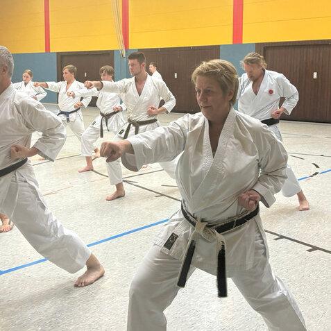 Jakob-Sensei legte den Schwerpunkt auf die präzise Ausführung von Techniken und forderte die Teilnehmer dazu auf, ihre Grundlagen zu verfeinern. Besonders in der Oberstufe ging er intensiv auf verschiedene Fußtechniken ein und half den Teilnehmern, ihre Ausführungskraft und Balance in diesen fortgeschrittenen Techniken zu verbessern. Die intensive Arbeit an Technik und Details hinterließ einen bleibenden Eindruck: Alle Teilnehmer konnten wertvolle Anregungen mitnehmen, um ihr eigenes Karate weiterzuentwickeln und zu verbessern.