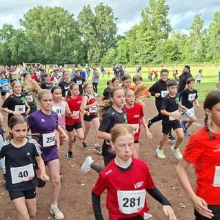 Die 400m werden auf der Bahn gelaufen, für die 1km geht es auf die Wendepunktstrecke in Richtung Gärtnerei und zurück zum Zieleinlauf ins Stadion.