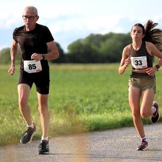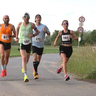 Die neue 5er und 10er Strecke: Nach dem Start im Stadionrund führt sie hinaus auf die Felder. Der Wendepunkt ist am idyllischen Weilerhof. Nach der Umrundung der Pferdeskulptur geht es zurück. Jedermänner biegen bei den Sportplätzen direkt ab zum Stadion, für die 10er geht es zur Gärtnerei auf die zweite Runde. Der Schlussspurt wird gekrönt vom Finish im Stadion und dem Applaus der Zuschauer.