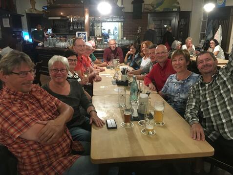 Zur Abfahrt am nächsten Morgen pausierte der Regen, so dass die erste Etappe bis nach Seligenstadt in Angriff genommen wurde. Einen Kaffee oder ein Eis später ging's weiter bis nach Obertshausen. Mit "Seeblick" wurde lecker gespeist und von drinnen dem Regen zugeschaut. Die Schlussetappe führte dann quasi auf direktem Wege zum Bürgerhaus zurück, wo die Gruppe sich noch zum Einkehrschwung versammelte, um die Tour ausklingen zulassen.
