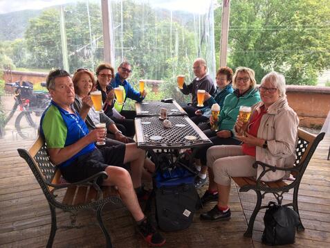 Voilà - das Weltkulturerbe Mittelrheintal mit seinen Burgen und den hübschen Orten am Wegesrand warten auf unsere Entdeckung. Nach 11 vorliegenden Anmeldungen treffen sich morgens in Wolfskehlen noch 8 Radlerinnen und Radler, um zunächst nach Oppenheim zu fahren. Von hier erfolgt dann ein Transport per Regionalbahn nach Bingen (mit Umstieg in Mainz), von wo aus die Radtour fortgesetzt wird. Am Samstag, 05.09.20, bläst uns im Rheintal zeitweise ein übler Gegenwind ins Gesicht. Die Pedelec-Fahrer unter uns sind hier definitiv im Vorteil.
