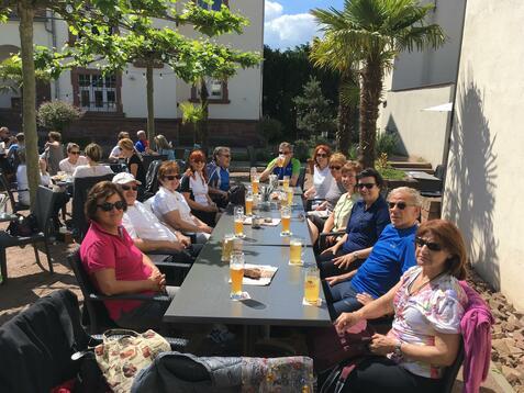 Werner Klein führte die Gruppe von insgesamt 13 Radlern souverän nach Lorsch und zurück. In einer Schleife ging es auf dem Hinweg an die Bergstraße, während für die Rückfahrt eine Route durch den Jägersburger Wald und durch Gernsheim gewählt wurde. Bei perfektem Fahrradwetter ließ es sich entspannt radeln, und dank der Pausen wurde die insgesamt über 70km lange Tour angenehm portioniert serviert. Von der Mittags- und Eispause mit ausreichend Zeit zur Besichtigung von Königshalle und Pfingstrosengarten in Lorsch über die Kaffeepause im Klostereck in Klein-Rohrheim bis zum obligatorischen Tourabschluss zu Hause im Bürgerhaus war genügend Gelegenheit, Neues auszutauschen und Kraft zu tanken.