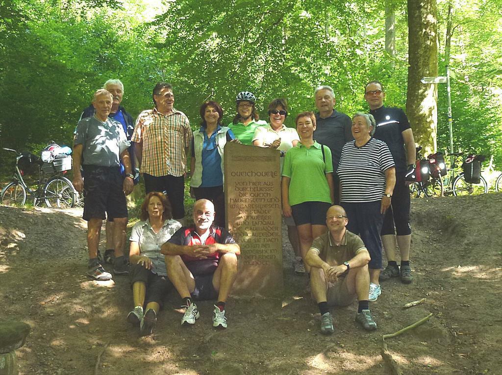 Am zweiten Septemberwochenende fand unsere Herbstwochenendfahrt statt. Ziel war, unsere Kondition auch in einem bergigen Gelände unter Beweis zu stellen. Fahren wir im Sommer etwa 40 km an den Mittwoch-Abenden so waren diesmal etwa 90 km je Tag vorgesehen. Von der Queichquelle in der Pfalz sollte es an gleichnamigem Flüsschen zum Rhein „gehen“ und weiter rechtsrheinisch in Wolfskehlen enden. Die Hinreise erfolgte per Zug (4 Umstiege mit dem Rheinland-Pfalz-Ticket). Bis auf einen „Platten“ gleich zu Beginn überhaupt kein Problem. Da am Startort keinerlei Übernachtungen möglich waren wählten wir ein anderes Quartier. 200 Höhenmeter mehr als der namens gebende Bach! Wie es sich gehört, wurde generalstabsmäßig für zwei drittel der Teilnehmer ein Transfer organisiert. Zu dritt wurde der Aufstieg per Rad angetreten. Es war toll!