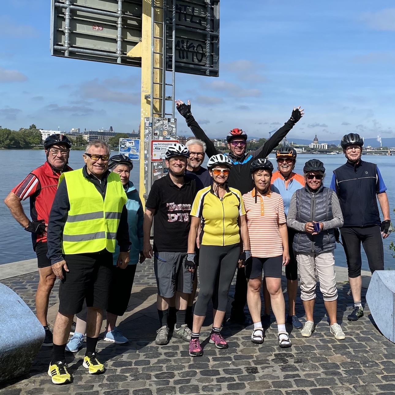 Diesig feucht und klamm ist es morgens zur Abfahrt in Wolfskehlen. Aber beim Stopp an der Mainspitze ist bereits die Sonne draußen und wärmt die 11 Teilnehmer*innen angenehm auf der Saison-Abschlussfahrt nach Schlangenbad.