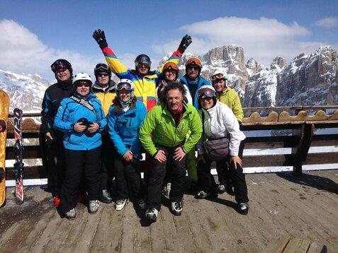 26 Teilnehmerinnen und Teilnehmer zwischen 1 und 69 Jahren - eine "bunte Truppe", die sich da kurz vor Ostern in Wolkenstein eingefunden hatte, um dem "weißen Wahn" zu frönen! Eingefunden? Richtig: Die Ausschreibung umfasste zwar auch einen Transfer im Reisebus, die Anmeldungen waren jedoch zum Redaktionsschluss noch nicht ausreichend hierfür. Und so wurde in Fahrgemeinschaften angereist, wodurch auch individuelle Verlängerungen und Unterbringungswünsche möglich wurden.
